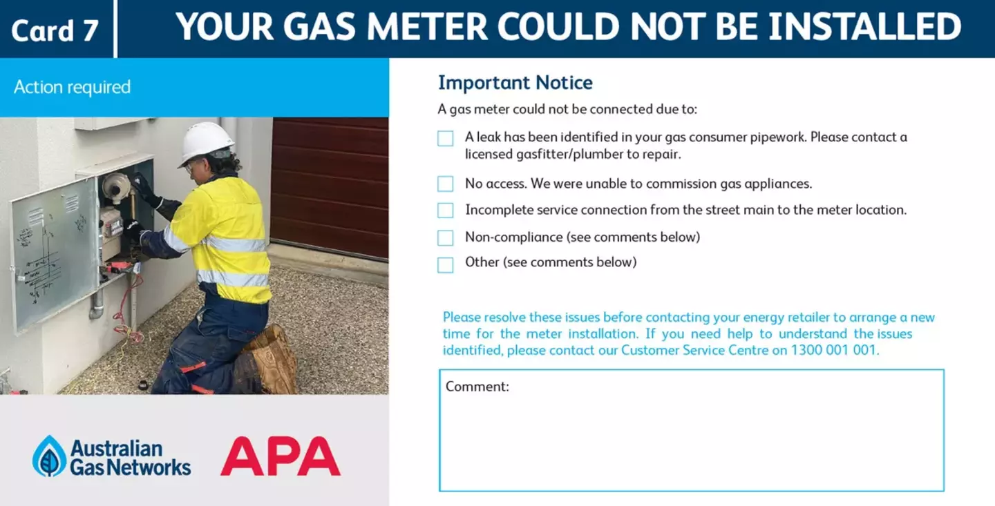 Please resolve these issues before contacting your energy retailer to arrange a new time for the meter installation.