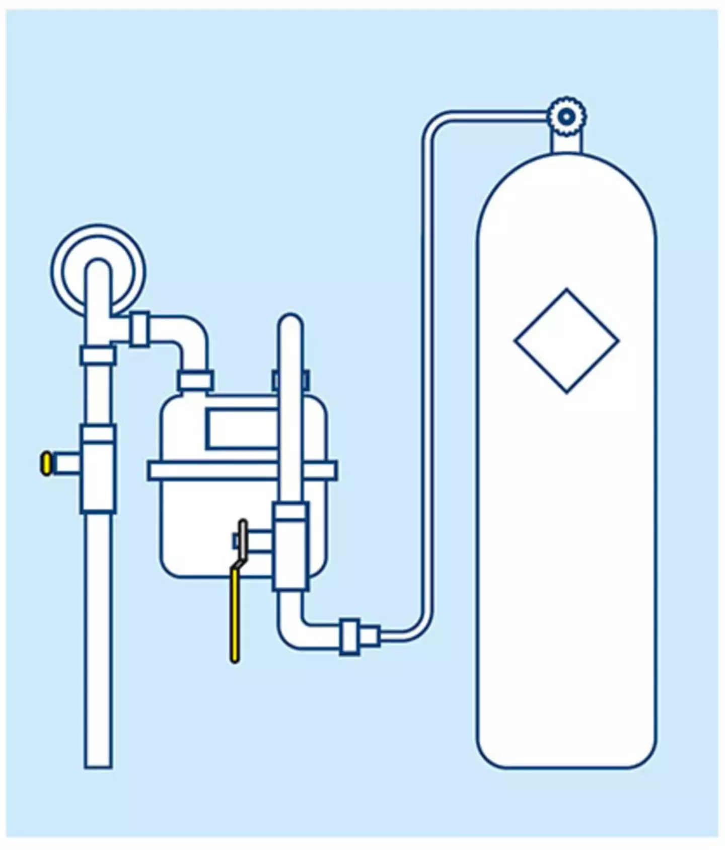 The cylinder is located adjacent to the gas meter. Gas is supplied to your meter through a valve which is in the ‘on’ position (see illustration).