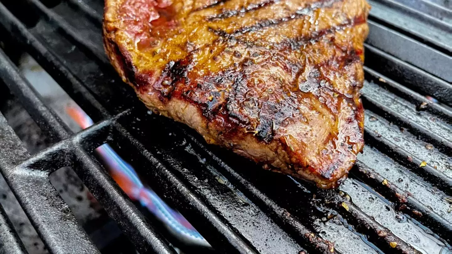 Preheat gas BBQ and set to medium-high heat. Cook beef on grill grates for 4-5 minutes each side for medium doneness. Remove beef from BBQ and rest for 5-10 minutes.